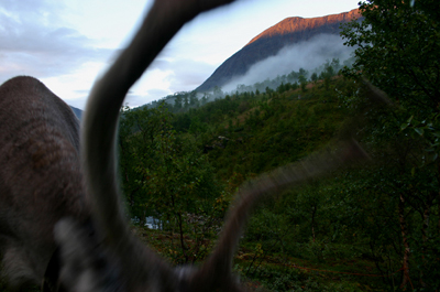 Mir war aufgefallen, dass Lumi sich eher auf das ihn umgebende Grünfutter stürzte, als auf das mitgebrachte Kraftfutter und so traf ich in Lönsdal den Entschluss, das gesamte Rentierfutter kurzerhand zu entsorgen und Lumi zukünftig ausgewählte Grünflächen zum abgrasen als Ersatz anzubieten. Ob ihm die Vegetation der norwegischen Bergwelt genug Energie für die Wanderung liefern würde, musste sich erst noch herausstellen. Immerhin machen frei lebende Rentiere den ganzen Tag nichts anderes als fressen und wiederkäuen, fressen und wiederkäuen usw. – Lumi musste allerdings ungefähr 5 Stunden mit uns wandern, in denen er keine Möglichkeit zur Nahrungsaufnahme hatte.